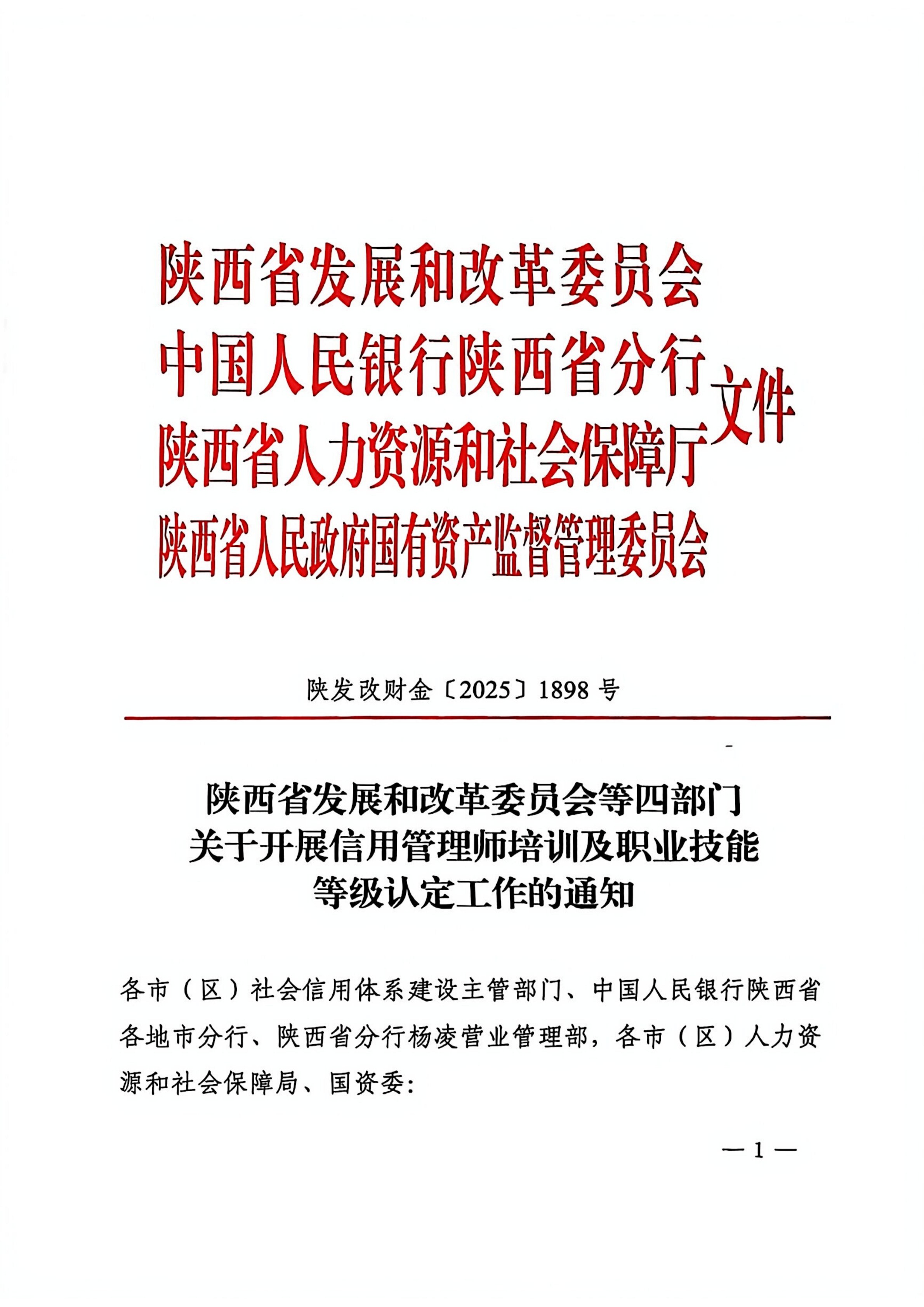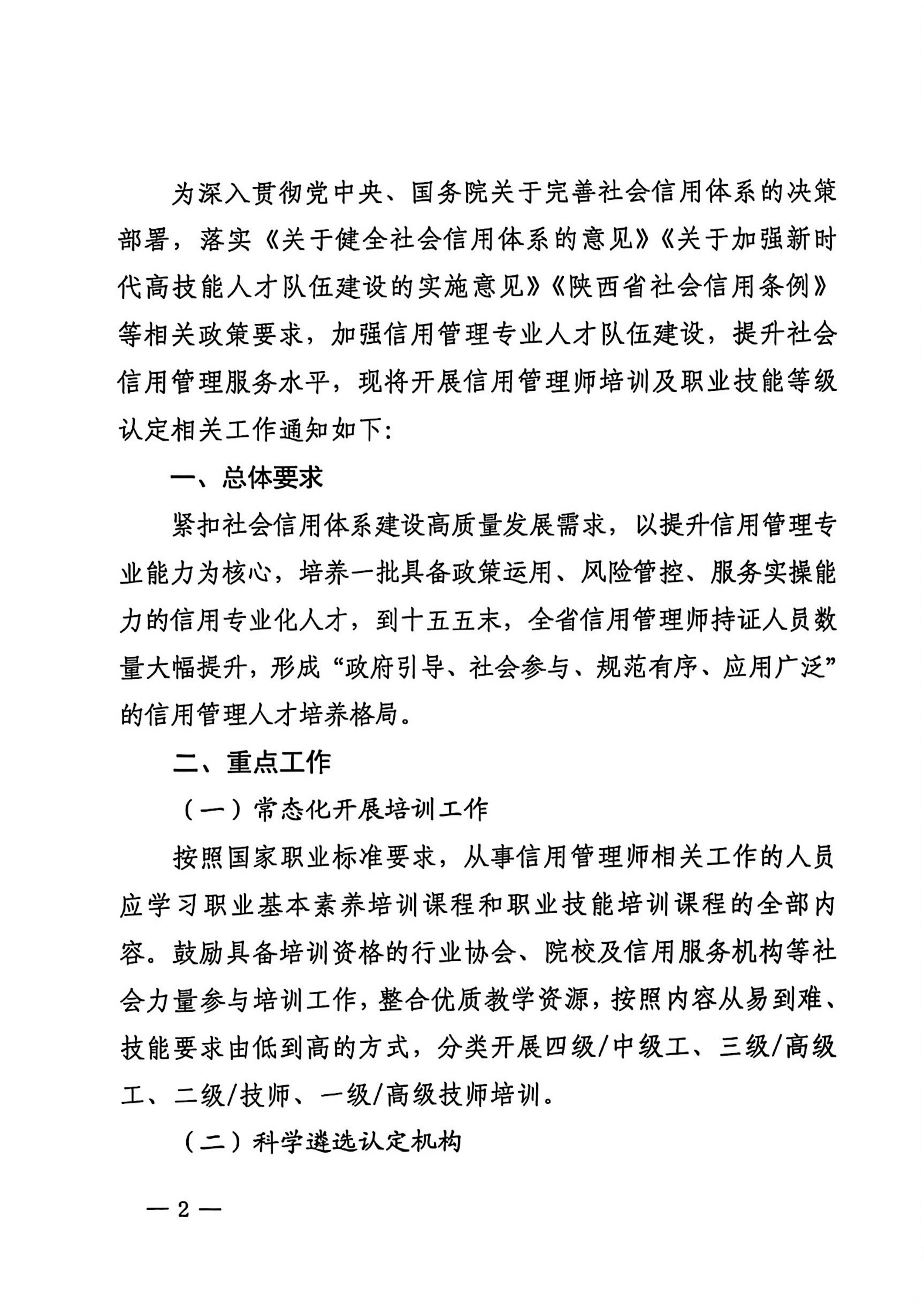 陕西省发改委关于开展信用管理师培训及职业技能等级认定工作的通知